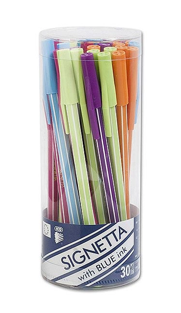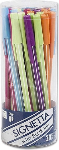 Eleganti penne a sfera monouso ICO SIGNETTA in un pratico set da 30 pezzi in colori pastello. Offrono scrittura fine e scorrevole con una punta da 0,7 mm e inchiostro blu. Il corpo compatto, non smontabile, garantisce affidabilità e utilizzo pulito. Fornite in un barattolo trasparente per una comoda conservazione e una scelta rapida.