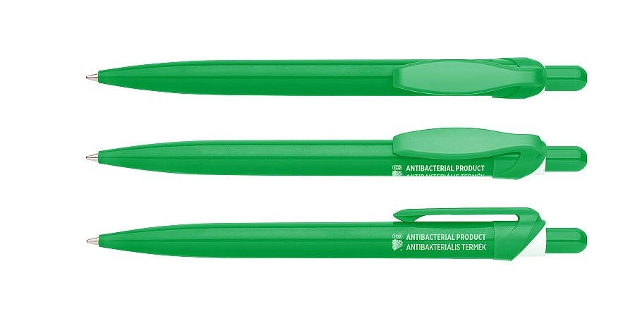 La penna a sfera antibatterica ICO è progettata per garantire la massima igiene in ambienti dove la penna passa tra molti utenti. Una miscela speciale con nanoparticelle d’argento è integrata direttamente nella plastica, riducendo a lungo termine la quantità di batteri sulla superficie della penna e contribuendo a limitarne la diffusione.