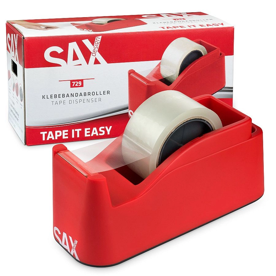 Il dispenser da tavolo per nastro SAX design 729 è ideale per ufficio, magazzino e casa. Grazie alla costruzione massiccia e al peso di 2,2 kg rimane fermo in posizione, così puoi strappare il nastro comodamente con una sola mano. La pratica struttura permette l'uso di un nastro largo 50 mm o di due nastri stretti da 25 mm, con la possibilità di scegliere tra due livelli di incasso per uno svolgimento regolare.