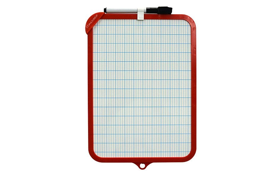 Pratica lavagna bifacciale per bambini e adulti con dimensioni 19 × 29 cm e cornice rossa. Offre un lato con stampa a righe e quadretti e l’altro completamente liscio. È ideale per esercitarsi nella scrittura, disegnare e svolgere esercizi. Si cancella facilmente con una spugnetta o un panno, sviluppa la creatività e la motricità fine e dispone di un occhiello per l’appensione. Il set include un pennarello con spugnetta e una spugnetta separata.
