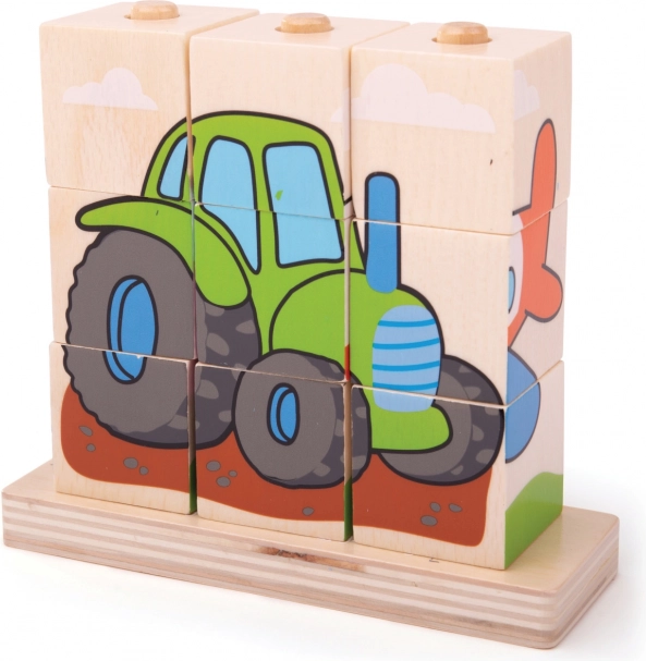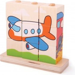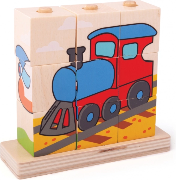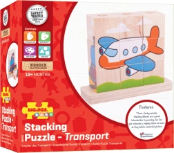 Puzzle in legno Bigjigs Baby Mezzi di trasporto è un giocattolo ideale per lo sviluppo delle abilità motorie e la coordinazione occhio-mano nei bambini. Contiene 10 blocchi di legno con quattro scene di trasporto: treno, auto, trattore e aereo.