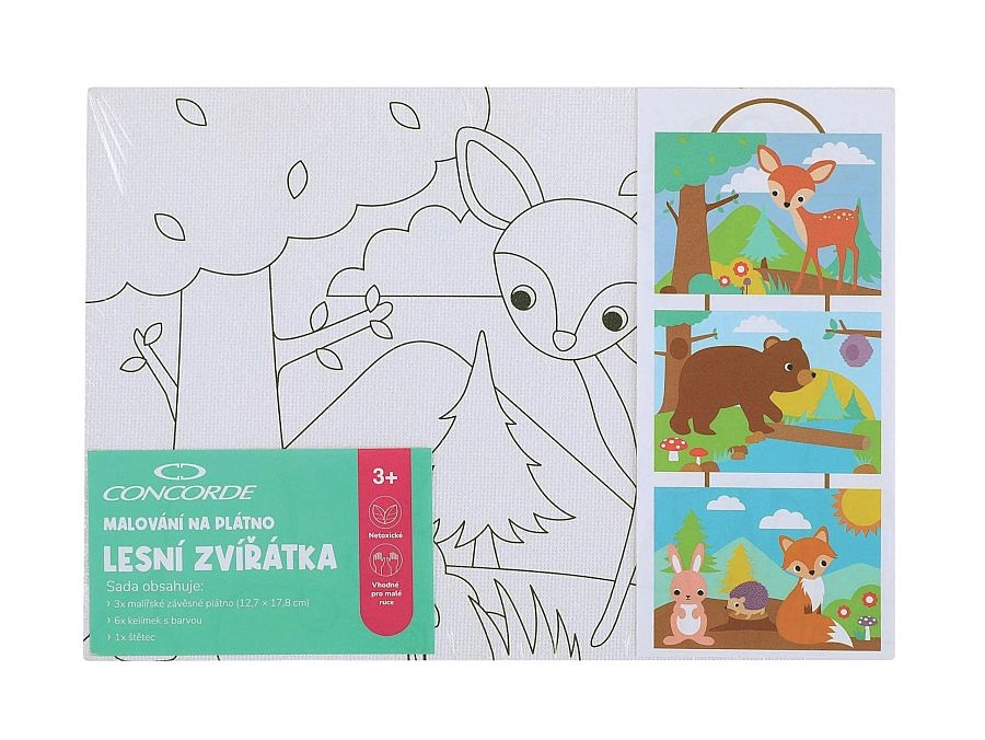 Il set per dipingere su tela CONCORDE con motivi di animaletti del bosco è un'ottima scelta per attività creative a casa, regali e pomeriggi pieni di divertimento. Grazie ai modelli è adatto ai principianti, ma piacerà anche ai bambini che amano creare a modo loro. I quadri finiti si appendono facilmente per decorare la cameretta.