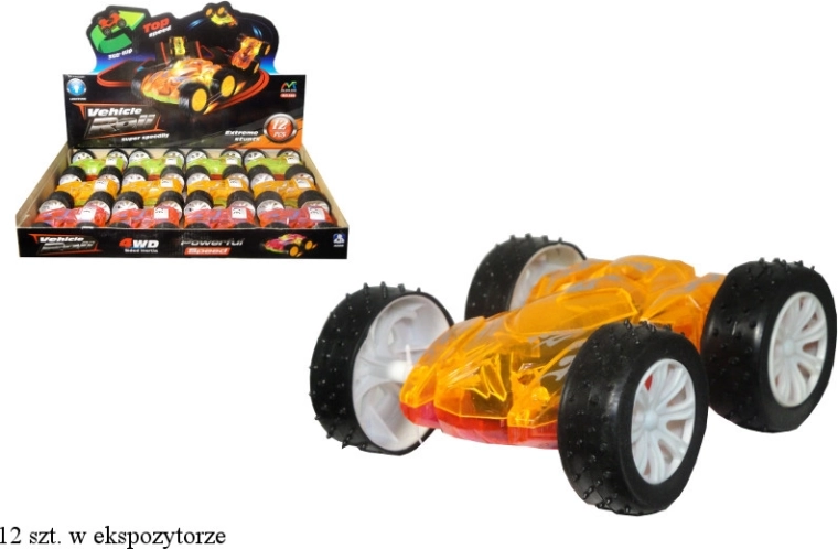 Divertente auto ribaltabile a doppia faccia per bambini dai 3 anni, con trazione a frizione, rotazioni a 360° e effetti luminosi colorati. La struttura resistente sopporta urti e capovolgimenti e, grazie al meccanismo a frizione, corre senza batterie nel motore: basta tirare e partire!