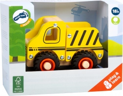 Questo veicolo da costruzione compatto in legno certificato FSC conquisterà ogni piccolo costruttore. Grazie alle ruote gommate si muove in modo silenzioso e sicuro su diverse superfici, risultando perfetto anche per la cameretta. La combinazione naturale del legno e del vivace colore giallo incoraggia il gioco curioso e lo sviluppo delle abilità.