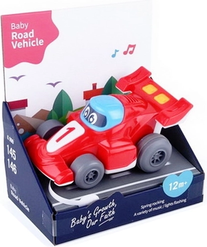 La simpatica macchinina da corsa con gli occhietti farà felice ogni bimbo. Offre effetti luminosi e sonori, è facile da usare ed è realizzata in modo sicuro per bambini da 12 mesi. Il giocattolo funziona con batterie AG13 ed è fornito in una scatolina di cartone.