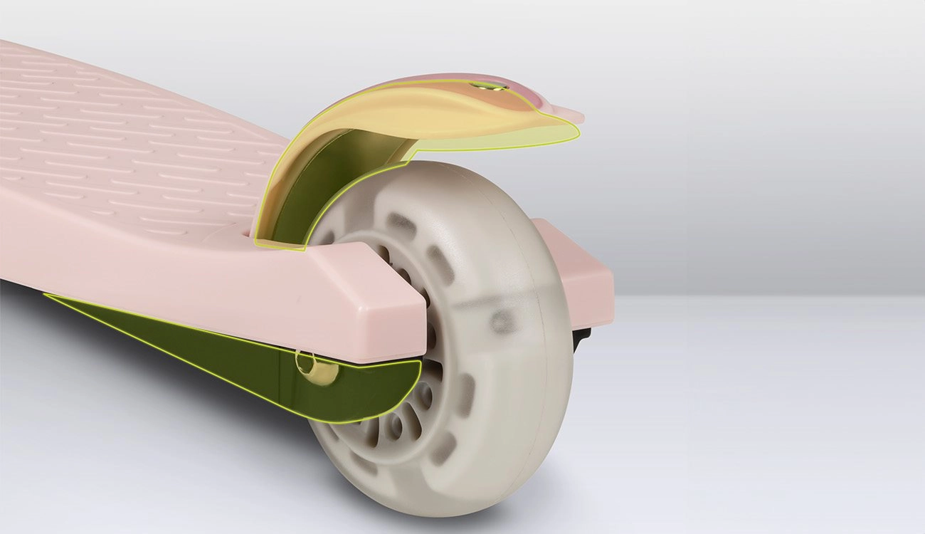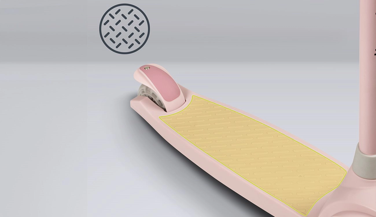 Le due ruote anteriori e la pedana bassa e antiscivolo offrono sicurezza ai piccoli rider e favoriscono il corretto equilibrio fin dalle prime uscite.