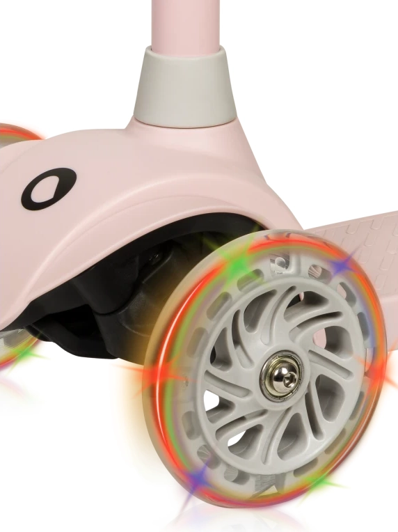 L’altezza del manubrio regolabile in quattro livelli cresce con il tuo bambino, i cuscinetti ABEC-7 assicurano una guida scorrevole e le luci LED nelle ruote si accendono con il movimento – senza batterie. Il limitatore dell’angolo di sterzata a 65° supporta una traiettoria più sicura e l’apprendimento dell’inclinazione corretta in curva.