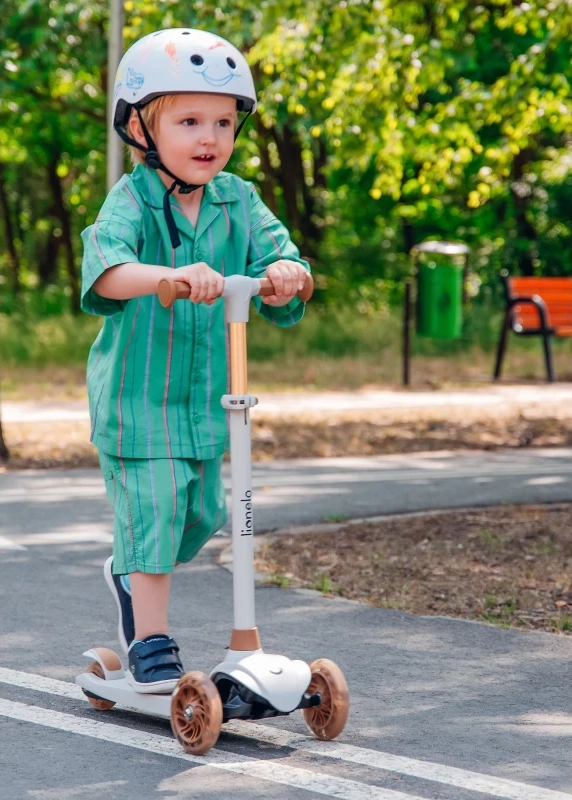 Il monopattino LIONELO Jessy è pensato per i piccoli rider che vogliono godersi in sicurezza le prime uscite. La struttura a tre ruote con due ruote anteriori assicura un’ottima stabilità, mentre la pedana bassa e ampia con superficie antiscivolo aiuta a mantenere una posizione salda. Grazie al freno posteriore integrato, il bambino può fermarsi in modo semplice e intuitivo.