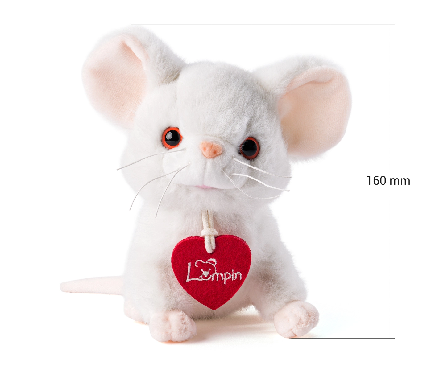 La dolcissima topolina di peluche Petit alta 14 cm farà felici bambini e collezionisti. È morbida e soffice e, grazie alla posizione seduta, mantiene perfettamente la forma sullo scaffale o nella cameretta. Ogni peluche ha un proprio nome e una storia nel libricino allegato e porta al collo il tipico cuoricino rosso.