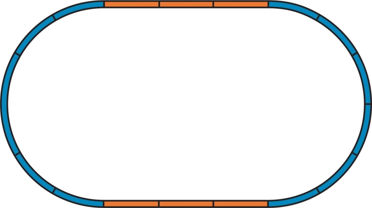 L’ovale base con raggio minimo di 358 mm si adatta a spazi ridotti e può essere ampliato in qualsiasi momento con ulteriori scambi e sezioni.