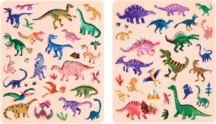 Crea continuamente nuove scene con i dinosauri: gli adesivi aderiscono saldamente e possono essere spostati da un punto all'altro senza difficoltà.