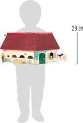 Questa fattoria in legno è progettata per stimolare l'immaginazione dei bambini. Grazie a dettagli come il tetto apribile e le porte scorrevoli, i bambini possono ricreare diversi scenari di vita in fattoria.
