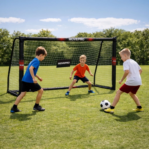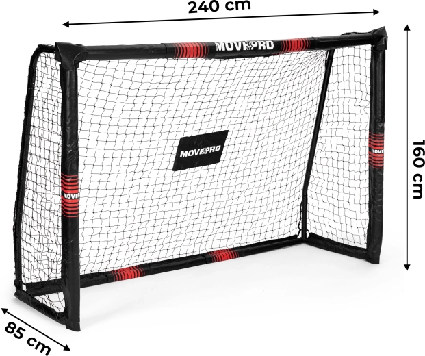 Goditi il calcio ovunque e in qualsiasi momento. La porta MOVEPRO con dimensioni 240 × 160 × 85 cm è progettata per un uso esterno regolare, dalle partite in famiglia in giardino fino alle sessioni di allenamento. La struttura in acciaio (Ø 32 mm) con verniciatura a polvere nera resiste alle intemperie e alla corrosione, mentre la rete in PE a trama fitta con rinforzo in PVC trattiene in modo affidabile anche i tiri più violenti.
