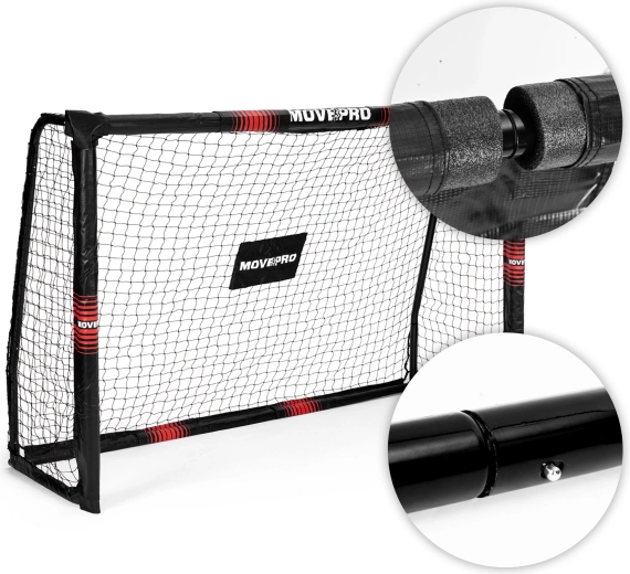 Il montaggio richiede pochi minuti grazie ai giunti click-in con fermo. Le coperture in schiuma sui tubi aumentano la sicurezza durante il gioco e il comfort nella movimentazione. Per la massima stabilità sull’erba sono inclusi picchetti a U che ancorano saldamente la porta e ne impediscono lo spostamento.