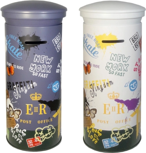 Elegante salvadanaio a forma di alta cassetta postale con stampe colorate che farà felici piccoli e grandi risparmiatori. Offre un design accattivante, inserimento facile delle monete ed è ideale per bambini dai 3 anni. Disponibile in due varianti di colore – scura e chiara, la selezione avviene in modo casuale.