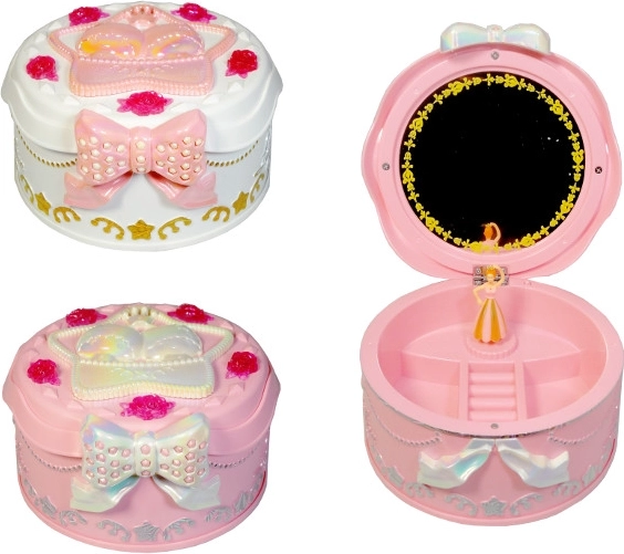 Una magica scatola portagioie musicale con una ballerina rotante che farà felice ogni bambina. All’apertura risuona una dolce melodia e la figurina inizia a girare. Ideale per conservare anellini, orecchini e piccoli tesori. Dolce regalo, melodia e danza della ballerina, pratico spazio contenitivo. Il colore è fornito a scelta casuale.