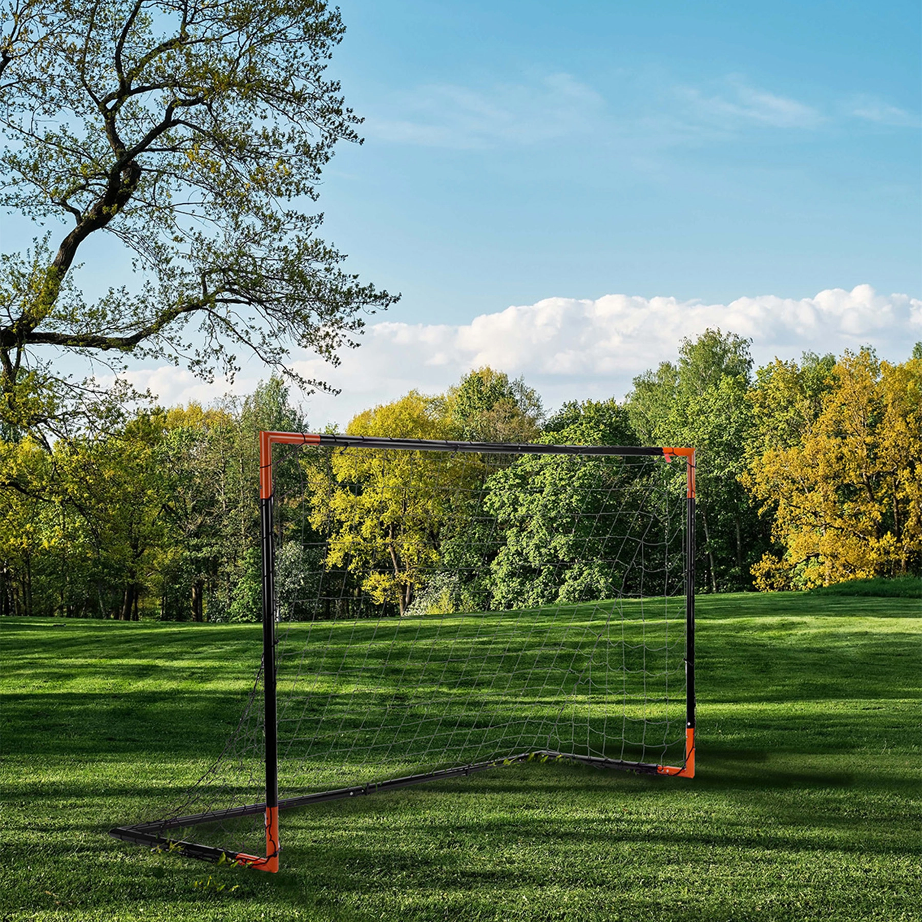 La confezione include picchetti per l’ancoraggio e clip per il fissaggio della rete, così la porta rimane ben ferma anche durante il gioco intenso. Le dimensioni ideali di 180 × 120 × 90 cm sono perfette per i giovani calciatori e per l’allenamento di tiro e parate.