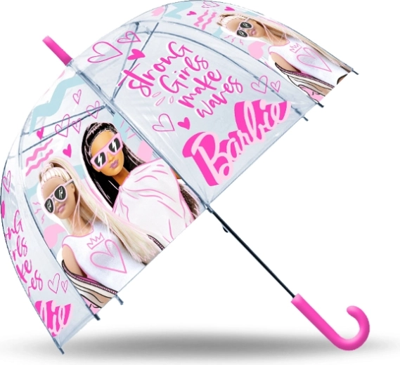 Elegante e pratico ombrello per bambini con motivo BARBIE che protegge dalla pioggia e offre al contempo un'ottima visuale grazie al design trasparente. La combinazione resistente di materiali – poliestere, alluminio, plastica e vetroresina – garantisce lunga durata e una comoda apertura automatica per un uso facile anche con manine piccole.