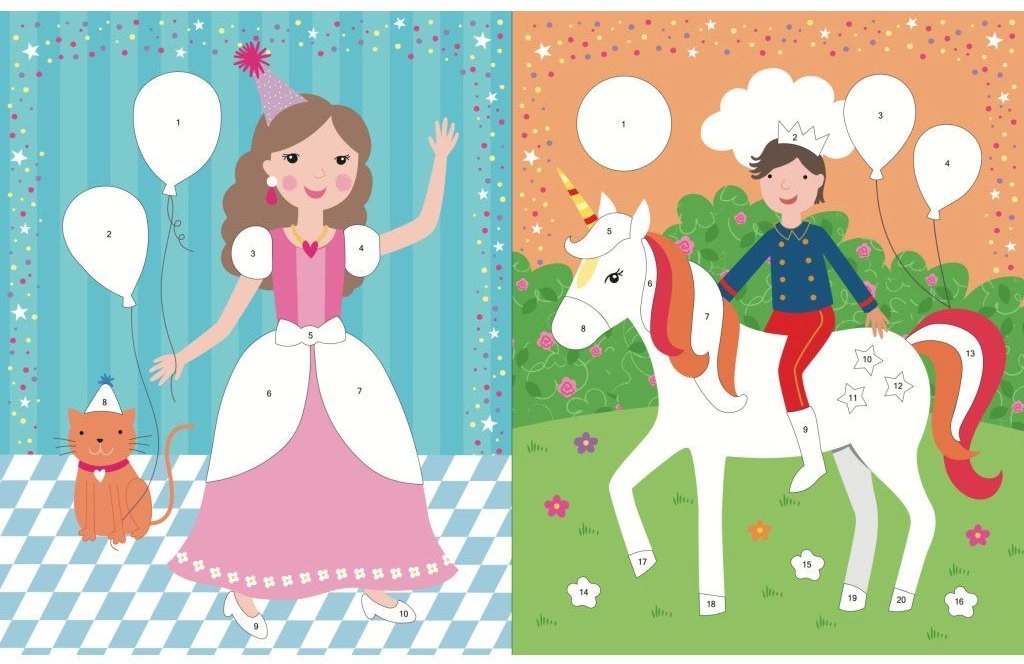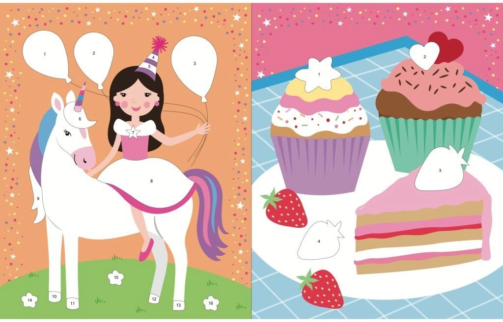 Questo allegro quaderno regala ai bambini ore di gioco creativo. Con oltre 400 adesivi possono completare scenari incantati con unicorni, aggiungere dettagli della famiglia reale e decorarli con dolci squisiti. Grazie a 24 pagine dedicate agli adesivi e 16 pagine da colorare, i bambini si divertiranno a casa e in viaggio.