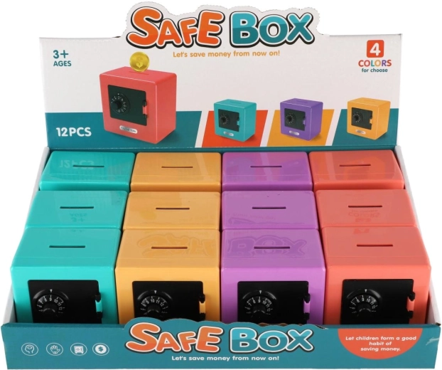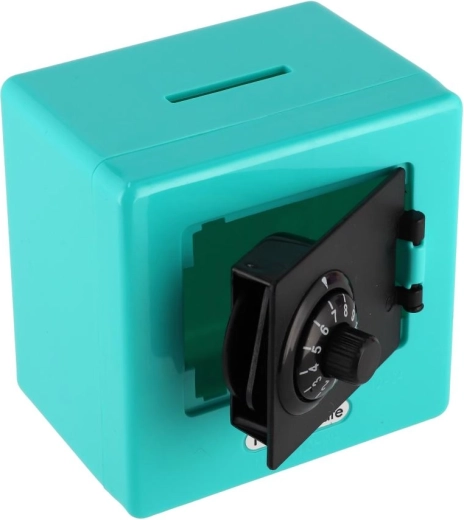 Questo originale salvadanaio a forma di mini cassaforte conquisterà bambini e adulti. Grazie alla combinazione girevole ha un aspetto realistico e motiva al risparmio regolare. Il design compatto a cubo con fessura superiore è ideale per monete e banconote piegate.
