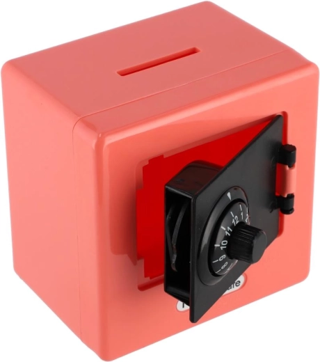 Lo sportello frontale con quadrante girevole rende il risparmio più divertente e dà una sensazione di sicurezza. I bambini si divertiranno ad aprire la “cassaforte” e impareranno il valore del denaro.