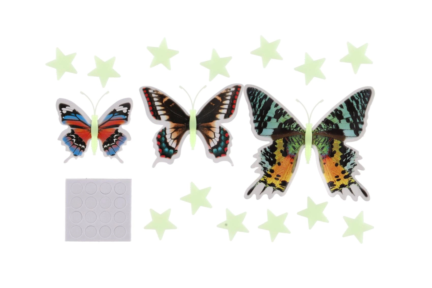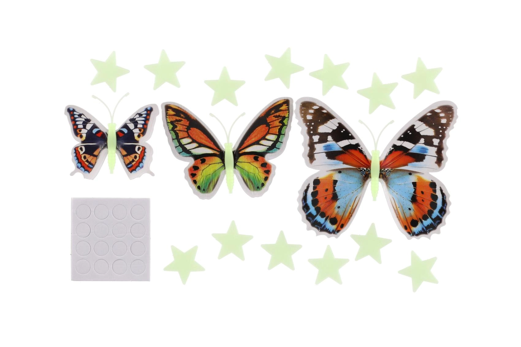 Incantevole set di farfalle colorate e stelline che brillano al buio, creando un’atmosfera piacevole per addormentarsi. Installazione semplice con punti adesivi, effetto 3D delle ali delle farfalle e stelle luminose che trasformano ogni parete in un universo creativo pieno di fantasia.