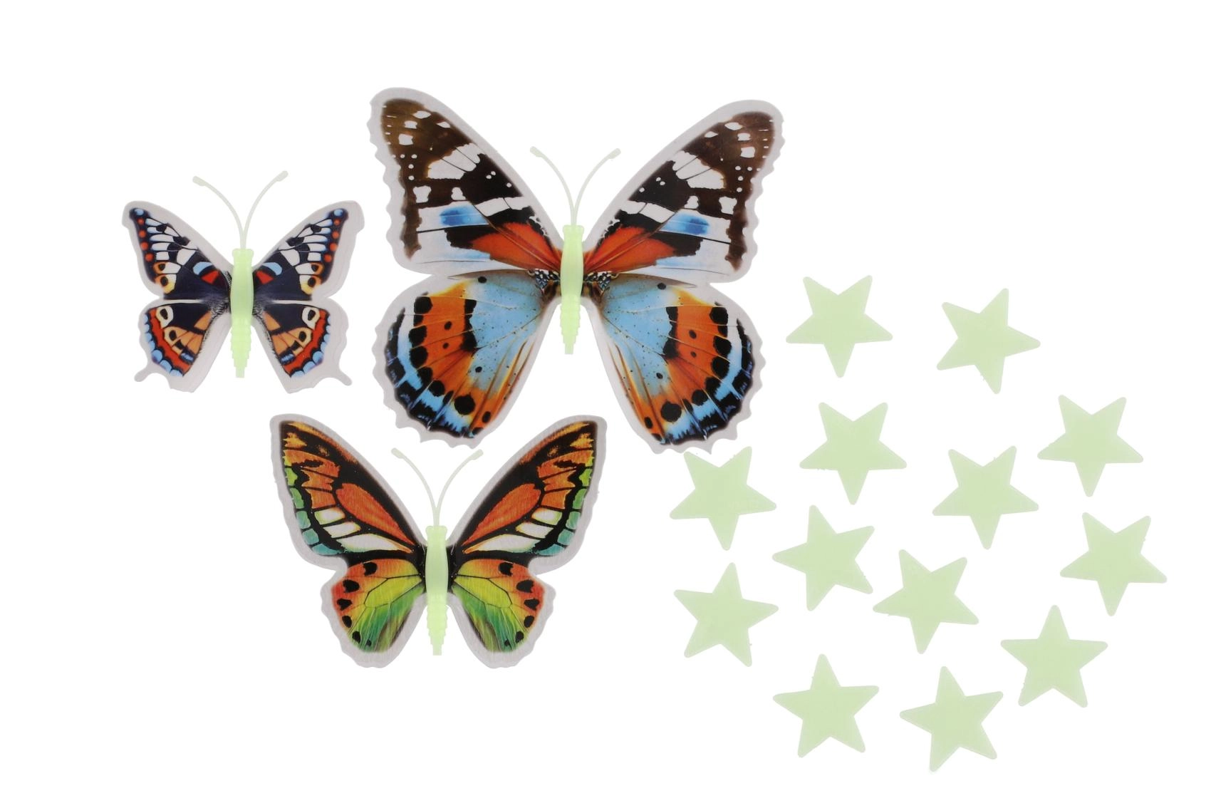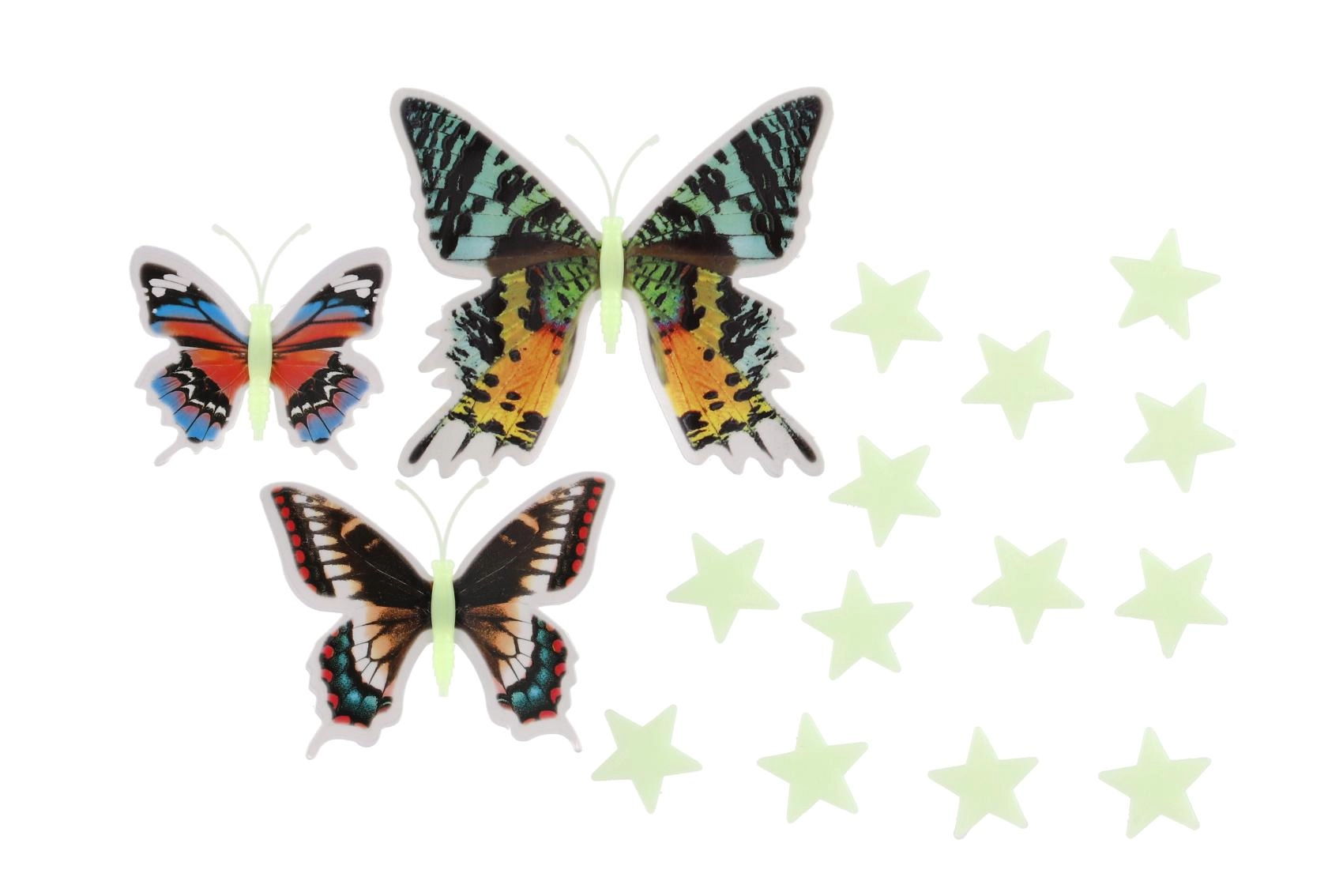 Trasforma la cameretta in un luogo da fiaba. Le farfalle decorative con ali in rilievo e il set di stelline fosforescenti creano una soffusa luce notturna, che calma i bambini e rende l’ambiente più accogliente. Basta “caricarle” di giorno con luce naturale o artificiale e la sera si illumineranno.
