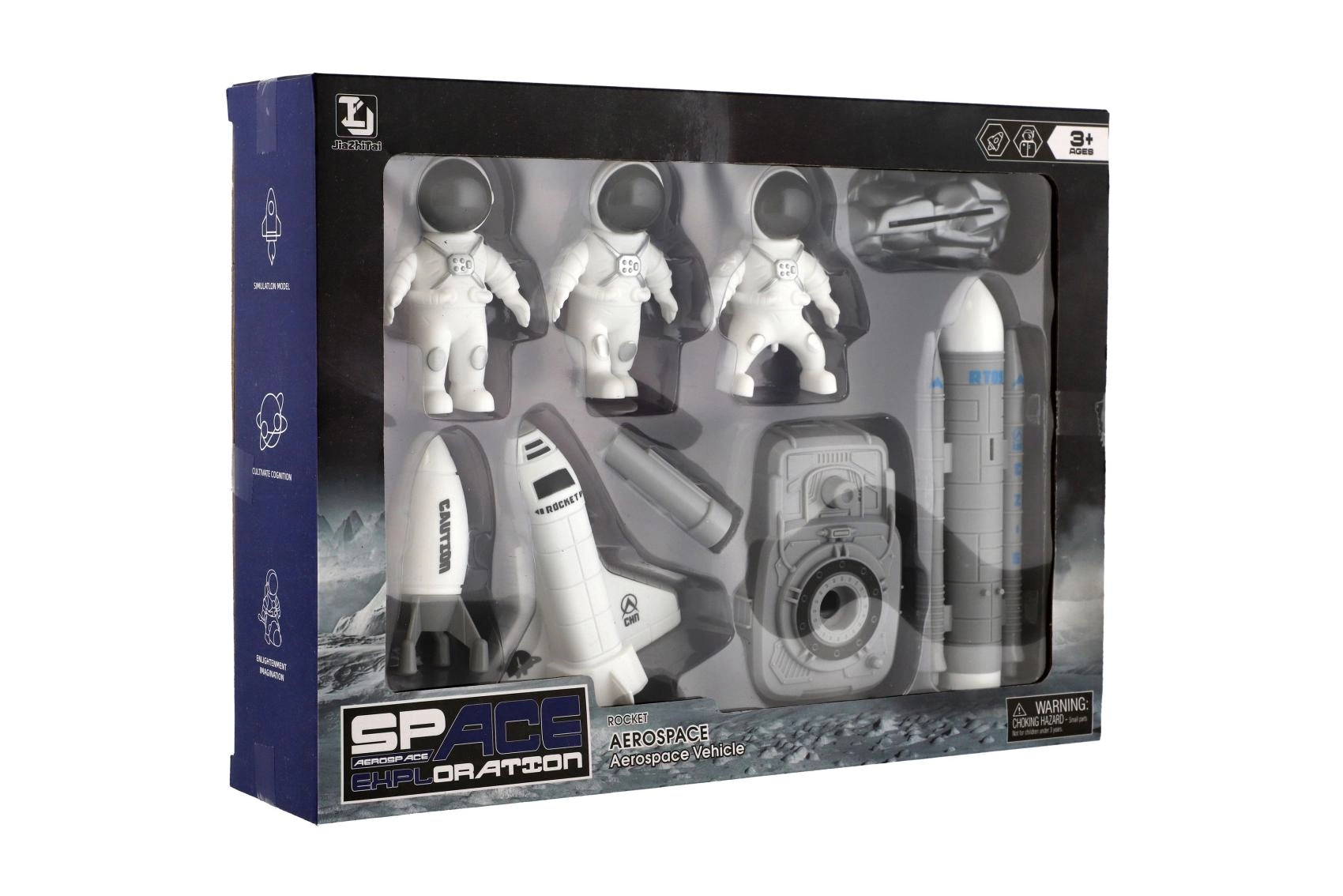 Compatto modello in plastica con motori e alette, ideale per il gioco immaginativo o come decorazione sulla mensola del piccolo ricercatore.