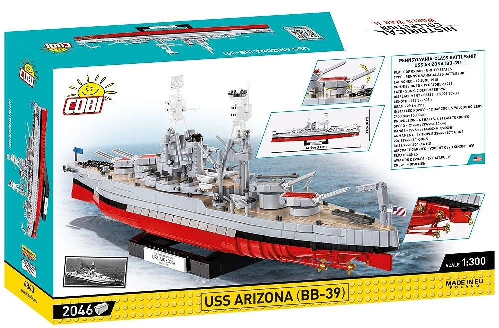 La leggendaria corazzata USS Arizona, simbolo degli eventi di Pearl Harbor, arriva come set di costruzione fedelmente riprodotto in scala 1:300 con una lunghezza di circa 61,5 cm. Grazie a tecniche costruttive avanzate, il modello riproduce accuratamente le proporzioni, la caratteristica forma dello scafo e delle sovrastrutture, soddisfacendo collezionisti e appassionati di storia navale.