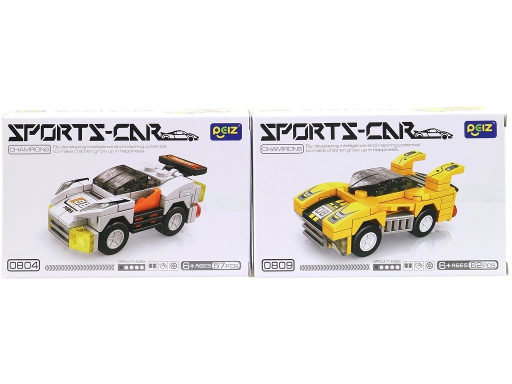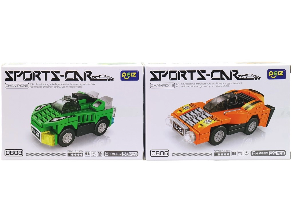 - Set di costruzione con mattoncini in plastica – mini auto sportive