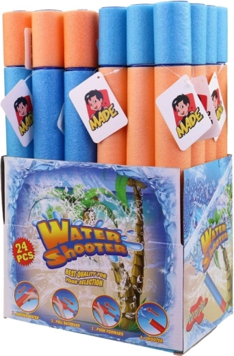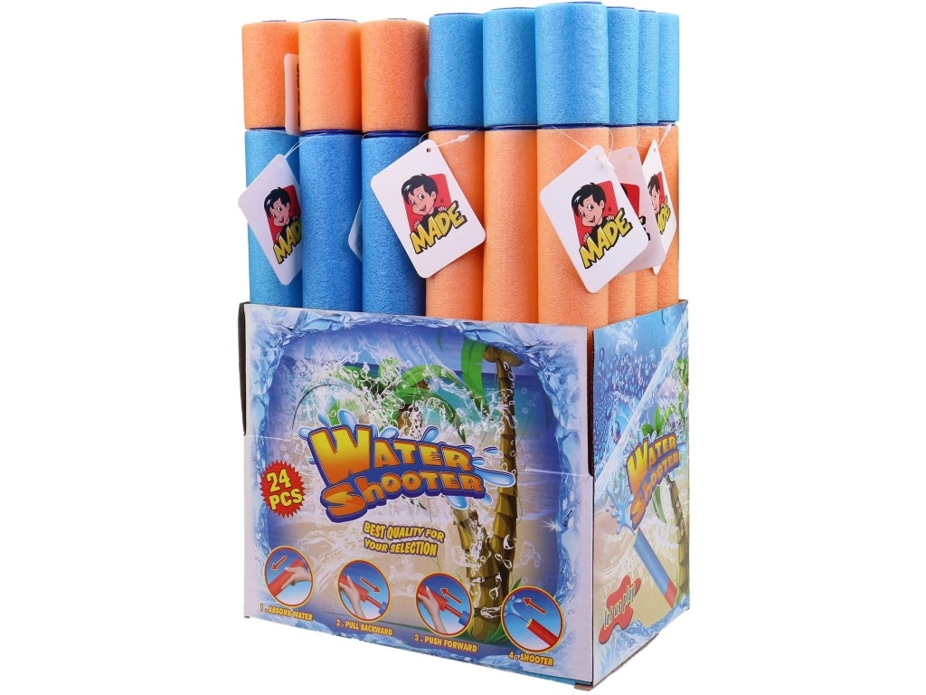 La pratica confezione da 24 pezzi in display box è ideale per asili, campi estivi, eventi per bambini o vendita al dettaglio. La pompa ha una lunghezza compatta di 38 cm, quindi è comoda da impugnare anche per i più piccoli ed è perfetta per giochi in piscina, in giardino e in spiaggia.