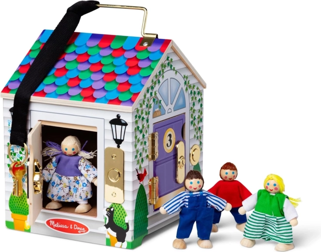 La solida lavorazione in legno di MELISSA & DOUG resiste al gioco quotidiano. Grazie alla pratica maniglia, la casetta è ideale anche per i viaggi.