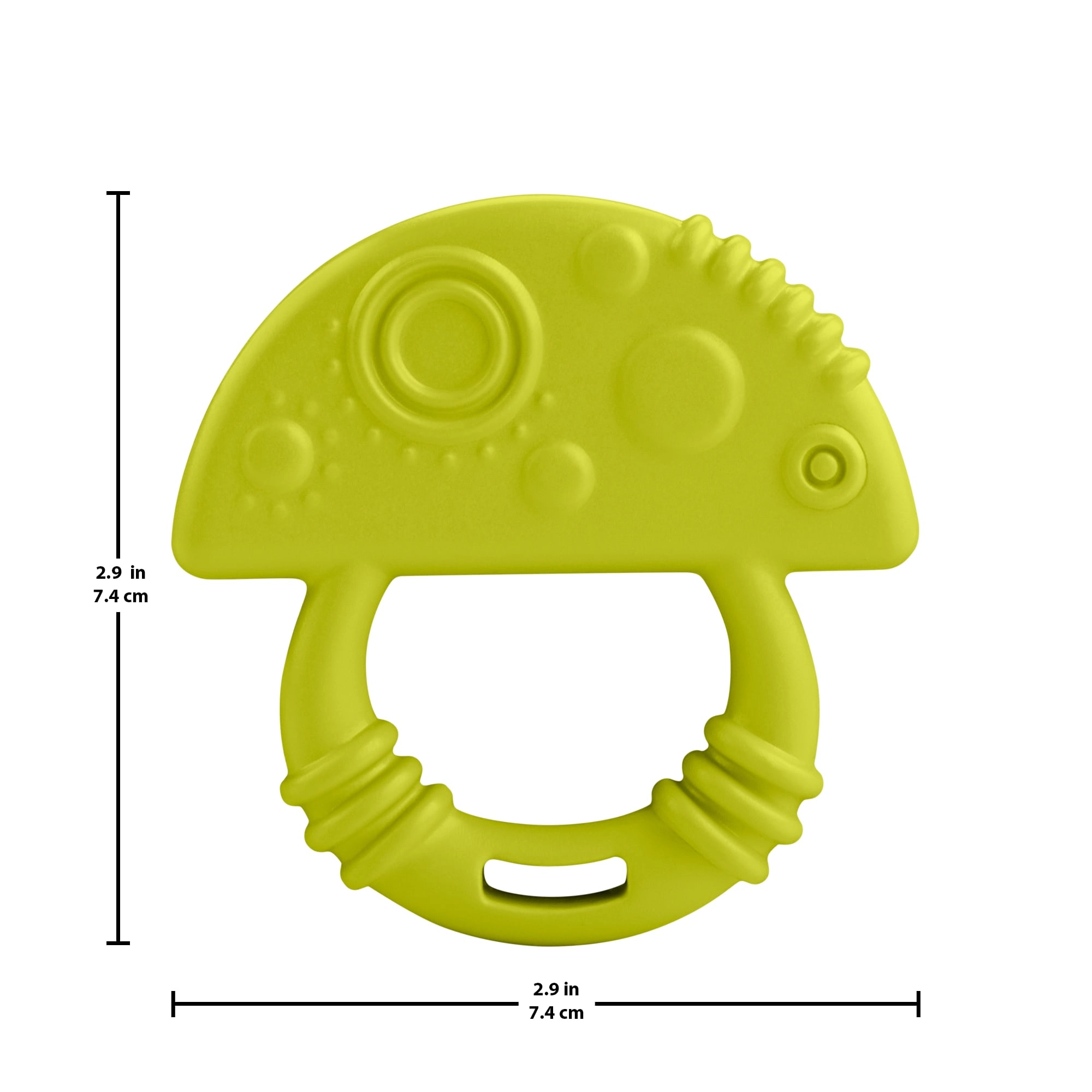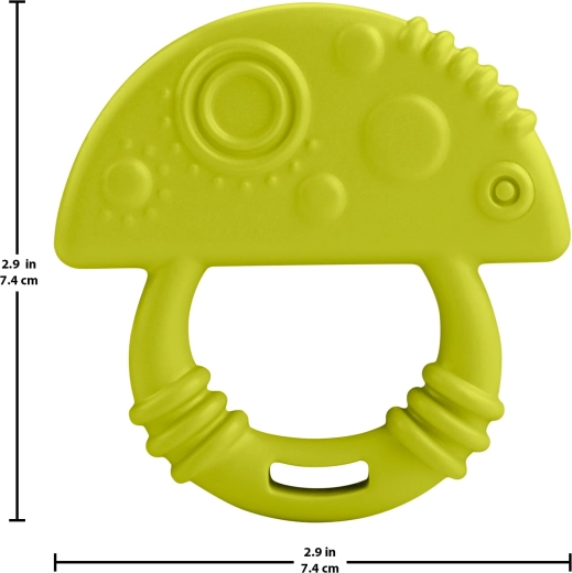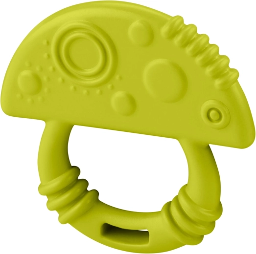 Il massaggiagengive a forma di tenero funghetto in colore verde è progettato per una presa comoda e un gioco naturale che favorisce la coordinazione mano–occhio e la motricità fine. Il materiale morbido e flessibile è piacevole al tatto e sicuro per l’uso quotidiano durante la masticazione.