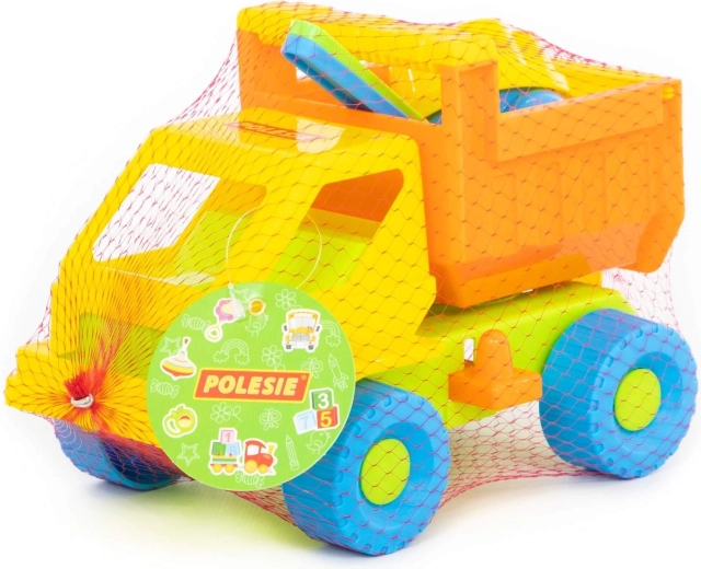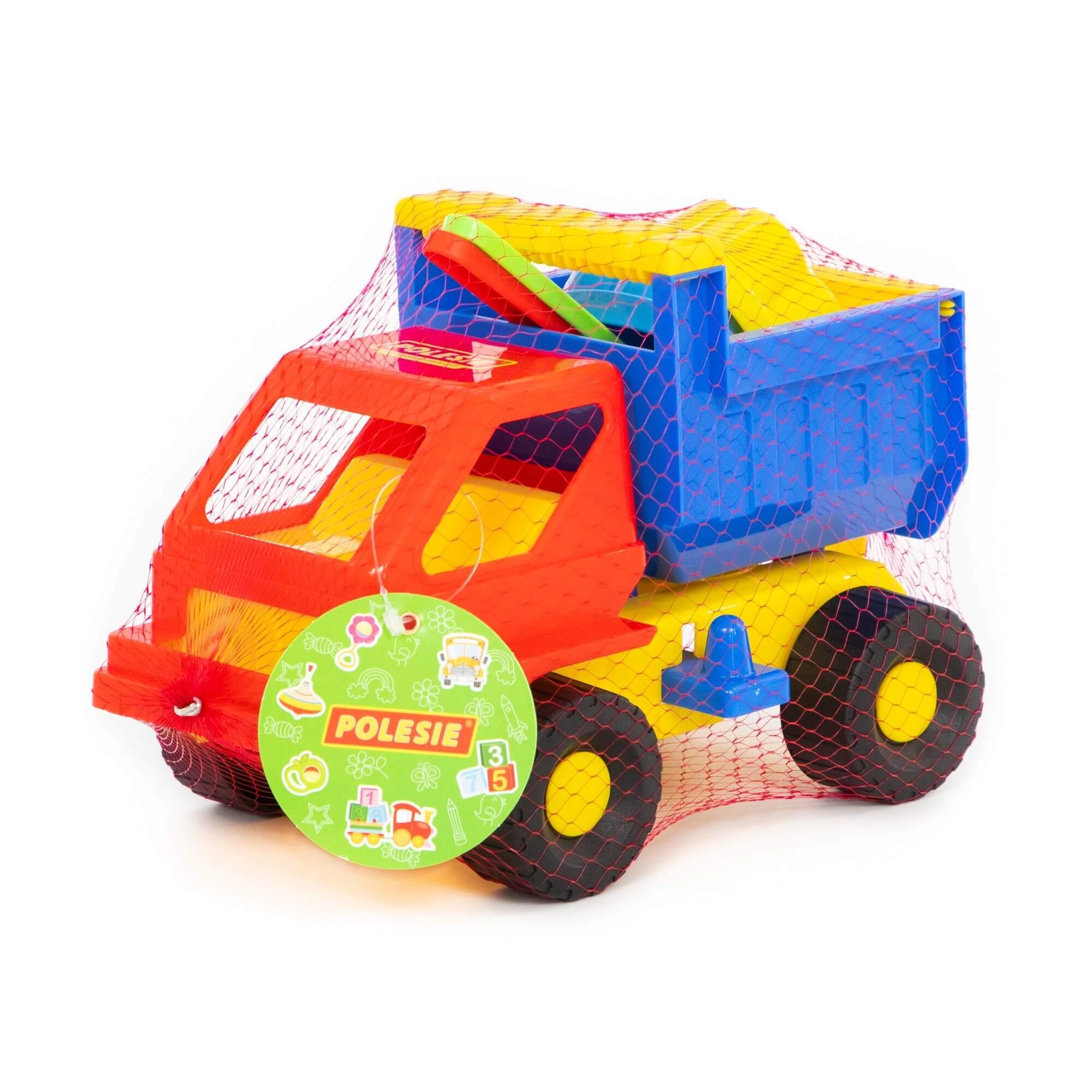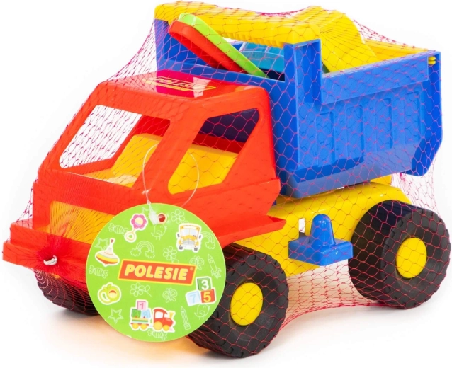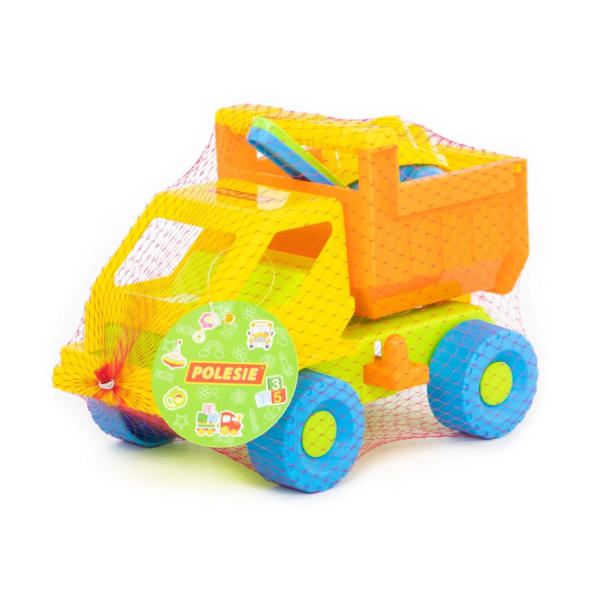 - Dotazione completa: camioncino con cassone ribaltabile, 2 formine, paletta e rastrellino.