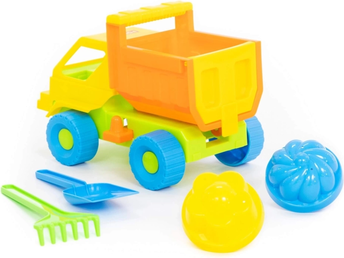 Divertente set da sabbia per bambini con colorato camioncino, 2 formine e attrezzi – paletta e rastrellino. Ideale per sabbiera, spiaggia e giardino. Realizzato in plastica resistente adatta alle mani dei bambini. Stimola creatività, motricità fine e coordinazione. Disponibile in diverse varianti di colore. Prezzo per un set.