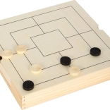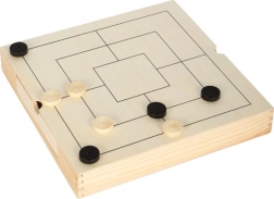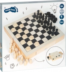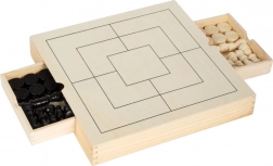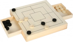 Questo elegante set in legno offre tre classici giochi strategici in uno: scacchi, dama e mulino. Grazie alle dimensioni compatte 28 × 28 × 4 cm e ai cassetti integrati è ideale sia in viaggio che a casa. Ogni pezzo ha il suo posto, così non si perde nulla e la partita può iniziare in pochi secondi.