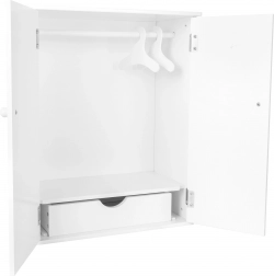 Questo armadio bianco per bambole è ideale per mantenere l'ordine nel guardaroba delle tue bambole preferite. Design pratico consente di appendere facilmente gli abiti e organizzare piccoli oggetti, perfetto per i giochi dei bambini.