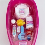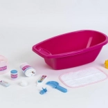 Scopri il divertimento con la grande vasca per bambole, fornita con un set completo di accessori che include tutto il necessario per simulare la cura di un bambino. Il set è perfetto per sviluppare la fantasia dei bambini durante il gioco.