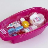Questa grande vasca per bambole contiene 12 pezzi di accessori che ogni "mamma" necessita per prendersi cura del suo bambino. Ideale per bambole di dimensioni fino a 50 cm.