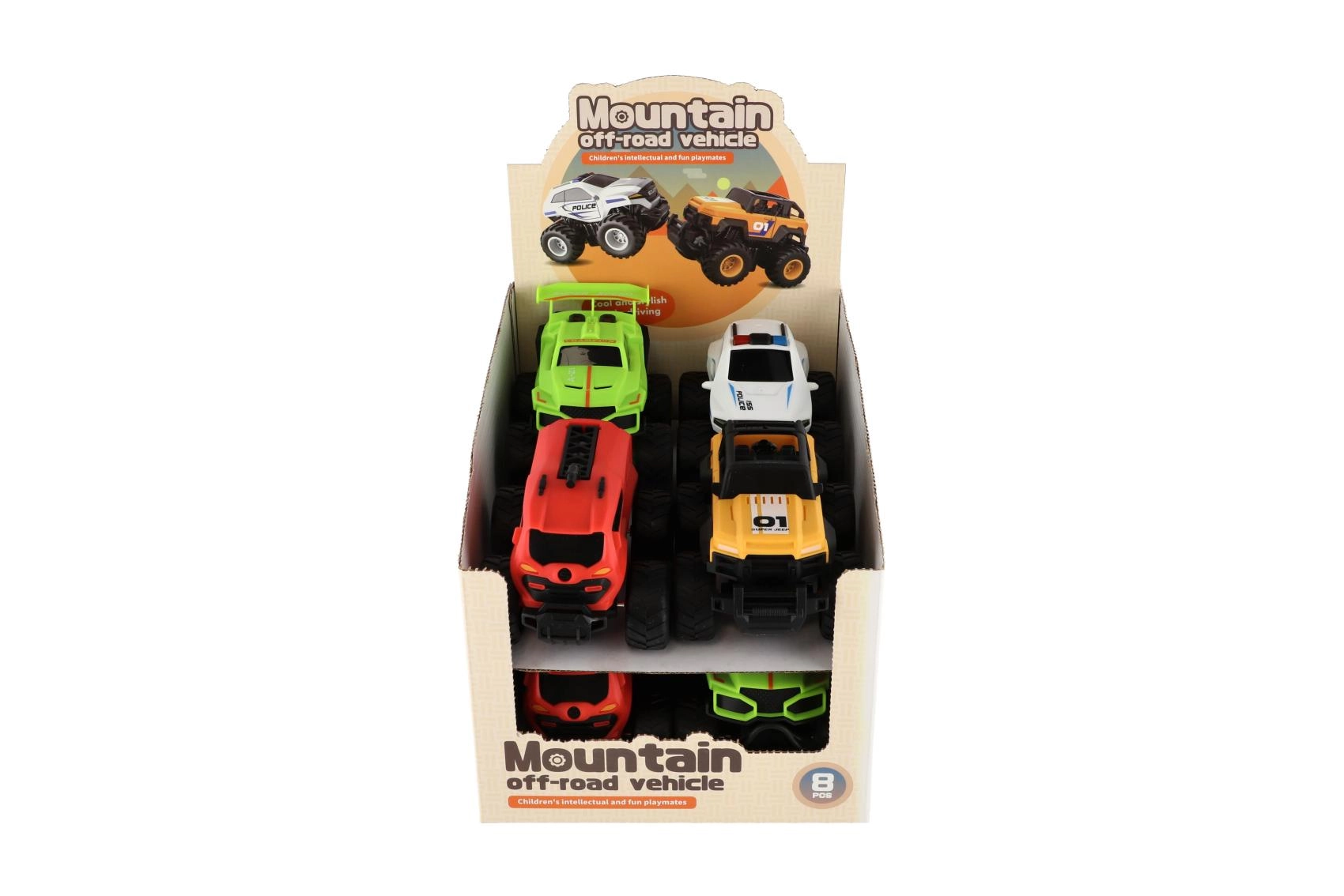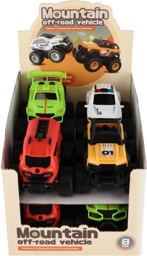 Scopri tanto divertimento con i monster truck compatti che affrontano dossi, moquette e piccoli ostacoli. Il meccanismo a inerzia garantisce una corsa scattante senza batterie e le grandi ruote tipo trattore offrono stabilità anche in curva. Nella confezione trovi 8 pezzi in 4 diversi design, inclusi motivi di polizia e vigili del fuoco – ideali per gare e giochi di ruolo.