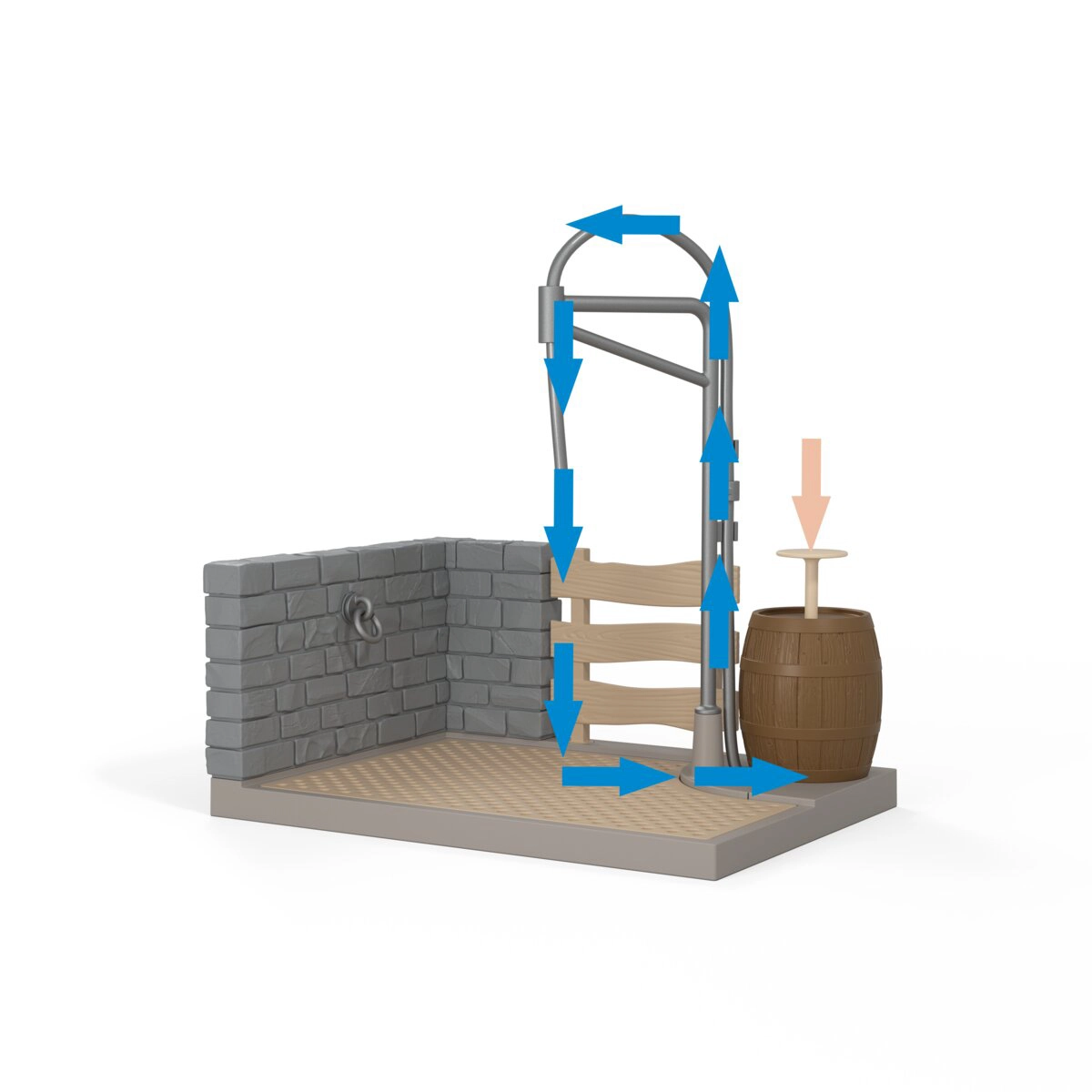 I bambini possono azionare l’acqua con la leva sul barile e davvero “docciare” il cavallo. L’effetto realistico sostiene il gioco creativo e la cura degli animali.