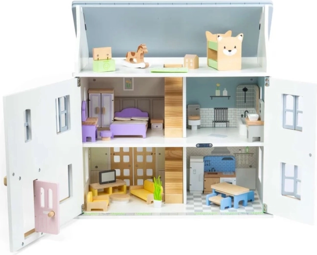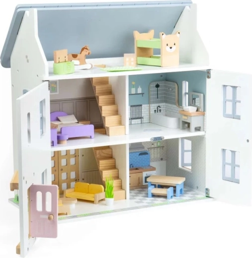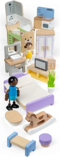 Questo set versatile offre tutto il necessario per arredare la casa delle bambole: dal divano e tavolino agli elementi di cucina e bagno, fino ai letti, all’armadio e agli accessori per la cameretta. Grazie alla lavorazione accurata e alle piacevoli tonalità pastello, i mobili hanno un aspetto naturale e invitano al gioco.