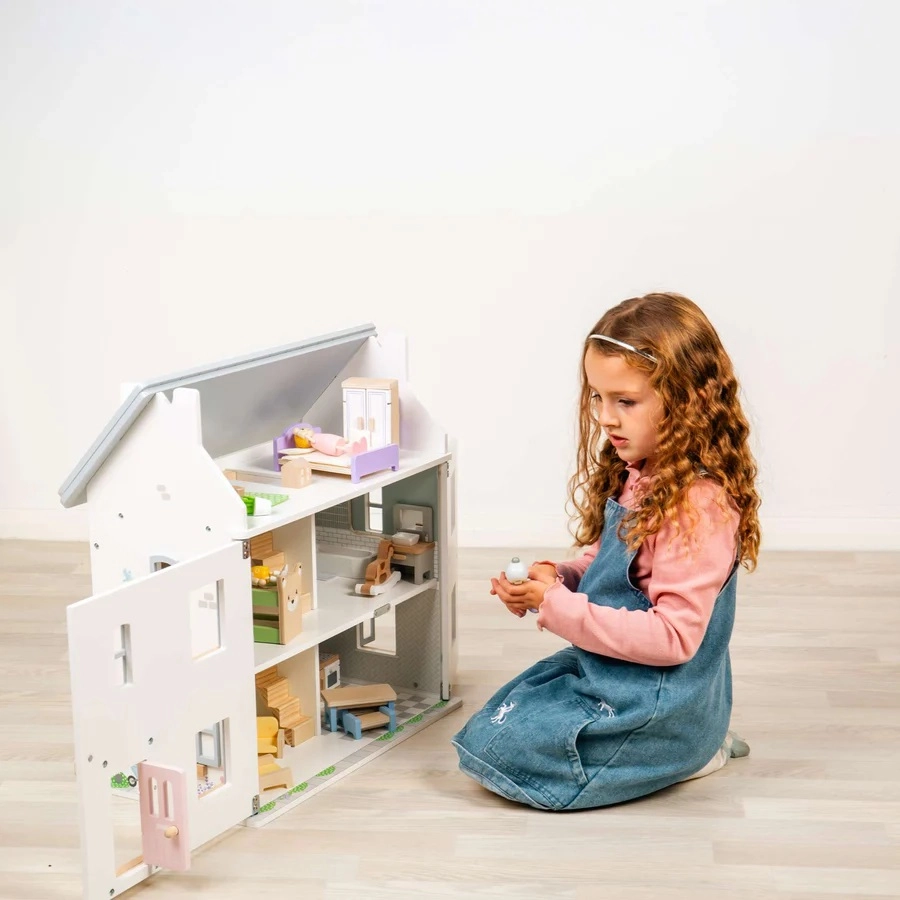 Il set contiene 31 pezzi realizzati con cura per soggiorno, cucina, bagno e due camere da letto: i bambini possono arredare facilmente ogni stanza e cambiare la disposizione secondo la fantasia.