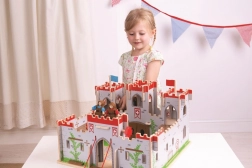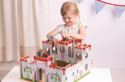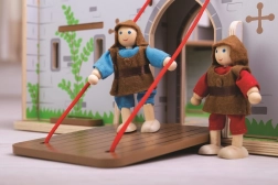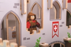 Il castello di legno del re George offre ai bambini un’autentica esperienza medievale. Grazie al ponte levatoio funzionante, ai balconi, alle porte mobili e segrete, i piccoli cavalieri possono pianificare assedi, vie di fuga e gloriose incoronazioni. Le bandiere intercambiabili permettono di cambiare rapidamente la fazione vincente e dare alla storia un nuovo sviluppo.