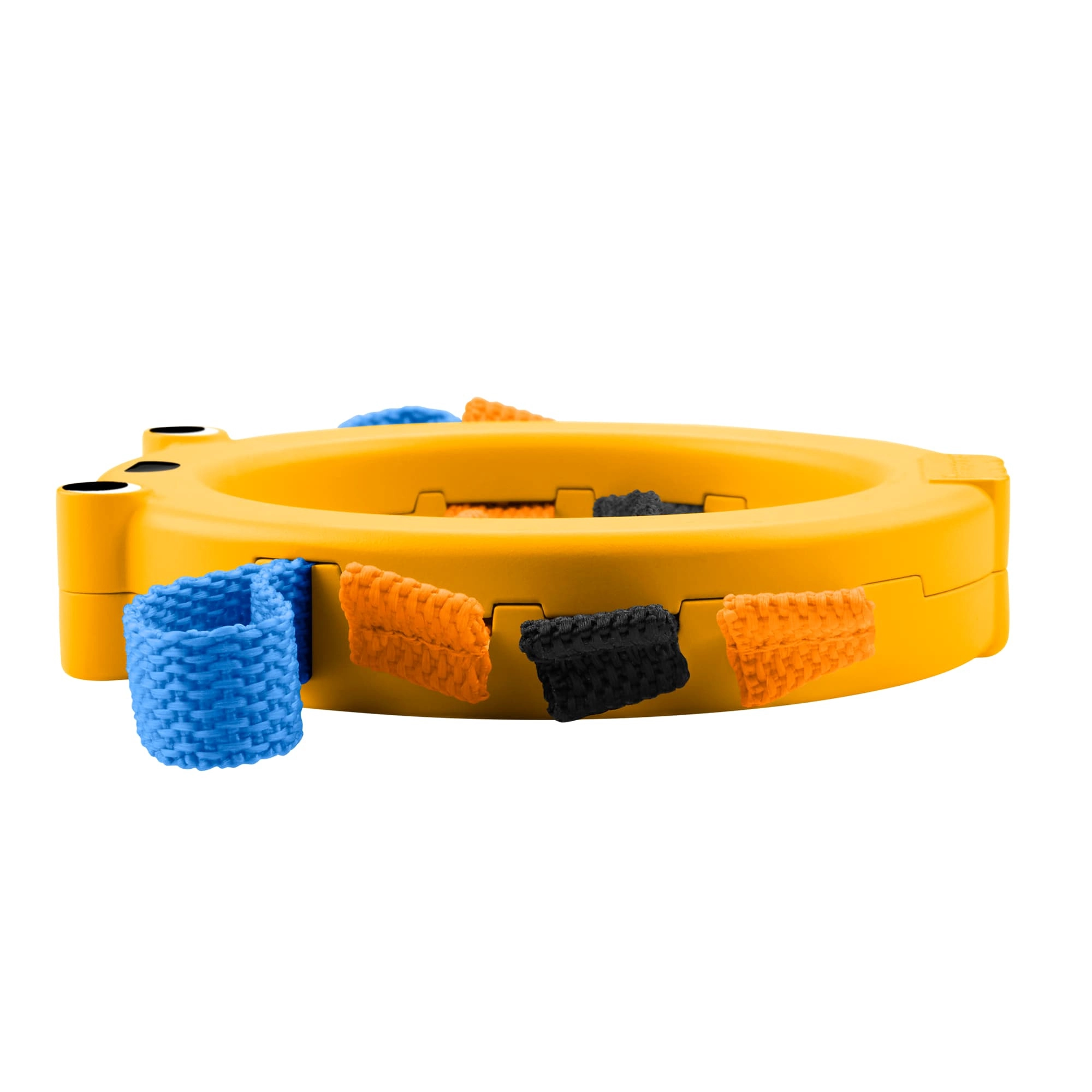 L’anello in plastica leggero con motivo amichevole e morbide asole incoraggia il bambino a tenere da solo l’oggetto, a scuoterlo e a manipolarlo.