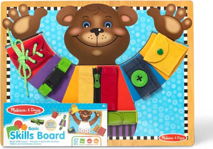 Questo giocattolo educativo interattivo combina una tavola in legno robusta con vivaci elementi tessili, così che i bambini esercitino, giocando, le abilità necessarie per vestirsi ogni giorno. L’orsetto illustrato motiva alla scoperta e alla ripetizione, mentre i diversi tipi di chiusura favoriscono pazienza e concentrazione.