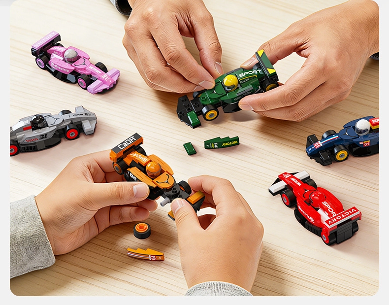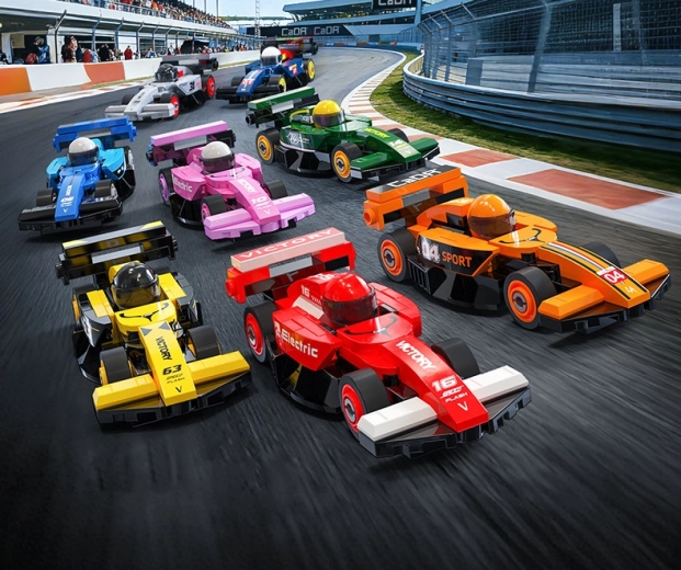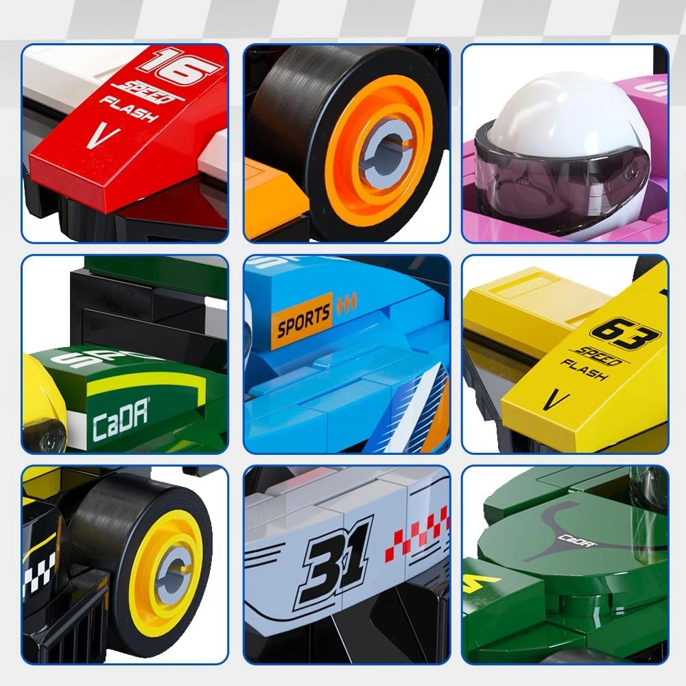 Questo set dal design curato offre 8 diversi mini monoposto da corsa, ciascuno con circa 70 pezzi. Una volta assemblati, nascono modelli compatti di circa 10 × 4 × 3 cm, che scorrono bene su superfici lisce e fanno un’ottima figura esposti in collezione. I pezzi sono compatibili con altri set CADA, così puoi continuare a modificare e combinare le auto.