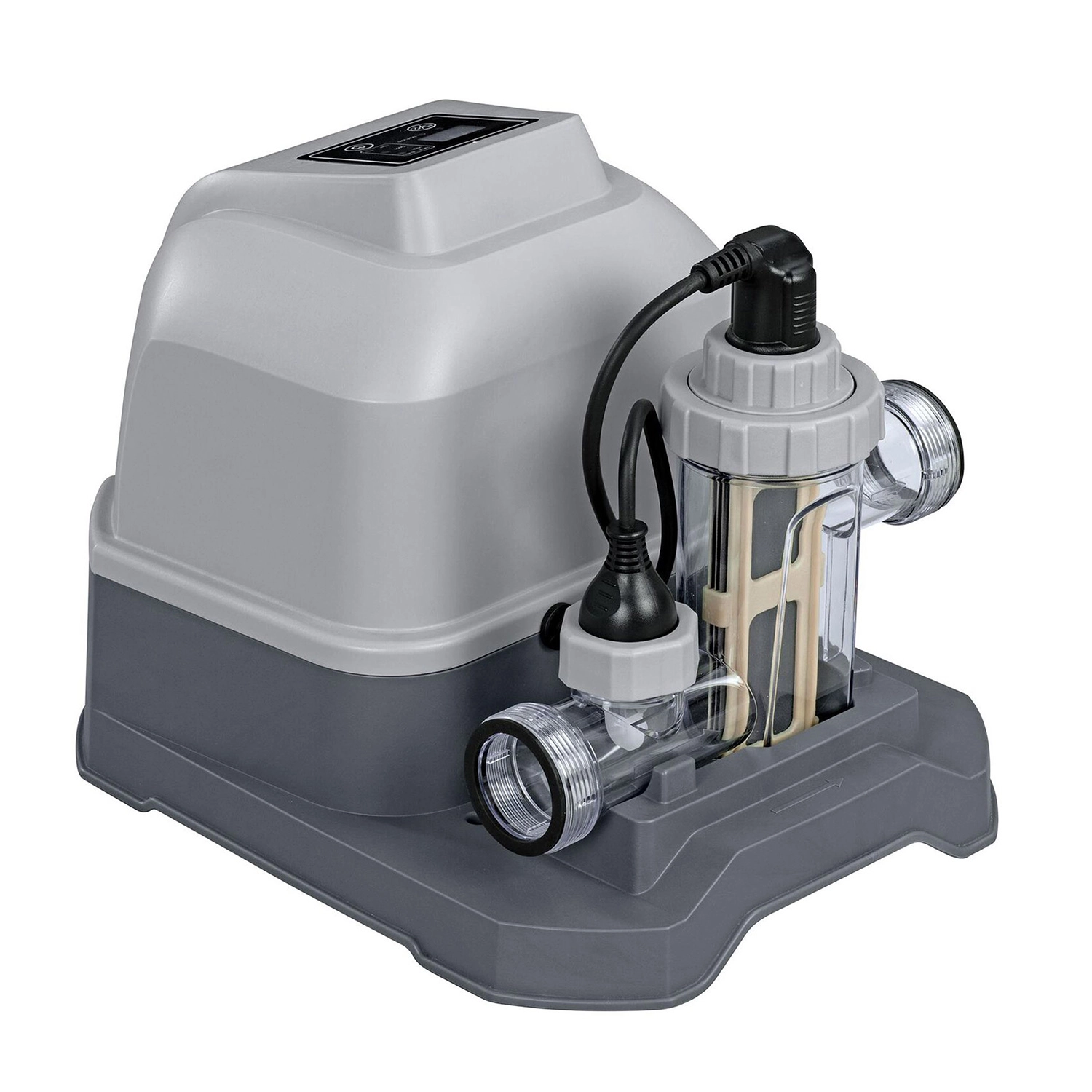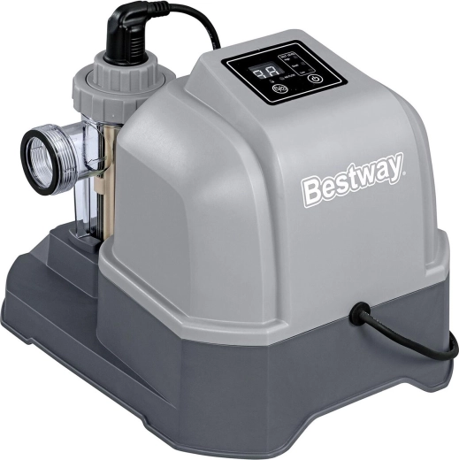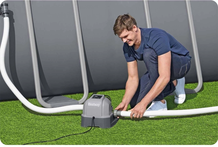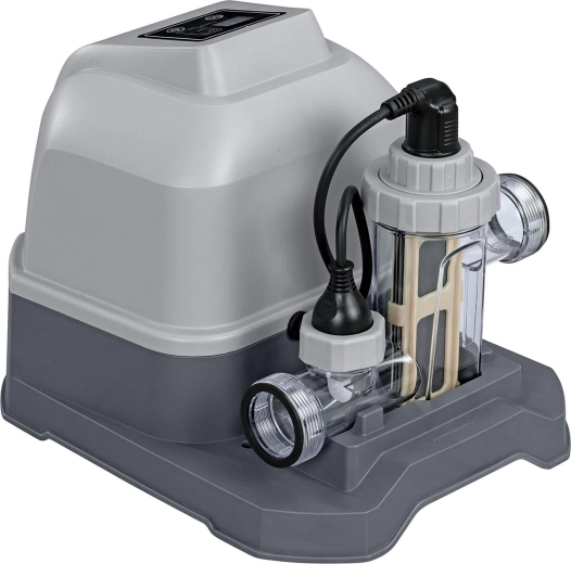 Scopri una disinfezione dell’acqua comoda ed efficace senza dover maneggiare pastiglie di cloro. Il generatore Bestway utilizza il comune sale da cucina, dal quale tramite elettrolisi produce cloro naturale. Mantiene l’acqua a lungo pulita, limpida e delicata sulla pelle sensibile, mentre gli ioni generati contrastano miratamente alghe e batteri.