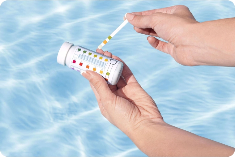 La confezione include strisce reattive 3 in 1 e strisce per la misura della salinità. Verifichi rapidamente cloro libero, pH, alcalinità e salinità dell’acqua.