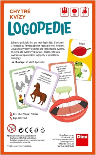 Un gioco divertente e pratico per i più piccoli che, in collaborazione con genitori o insegnanti, aiuta ad esercitare il linguaggio in modo naturale. Ideale come supporto agli esercizi di logopedia, soprattutto per il training della pronuncia dei suoni. Il gioco è stato sviluppato con logopedisti e pedagogisti specializzati, contiene 60 carte quiz ed è prodotto nella Repubblica Ceca.